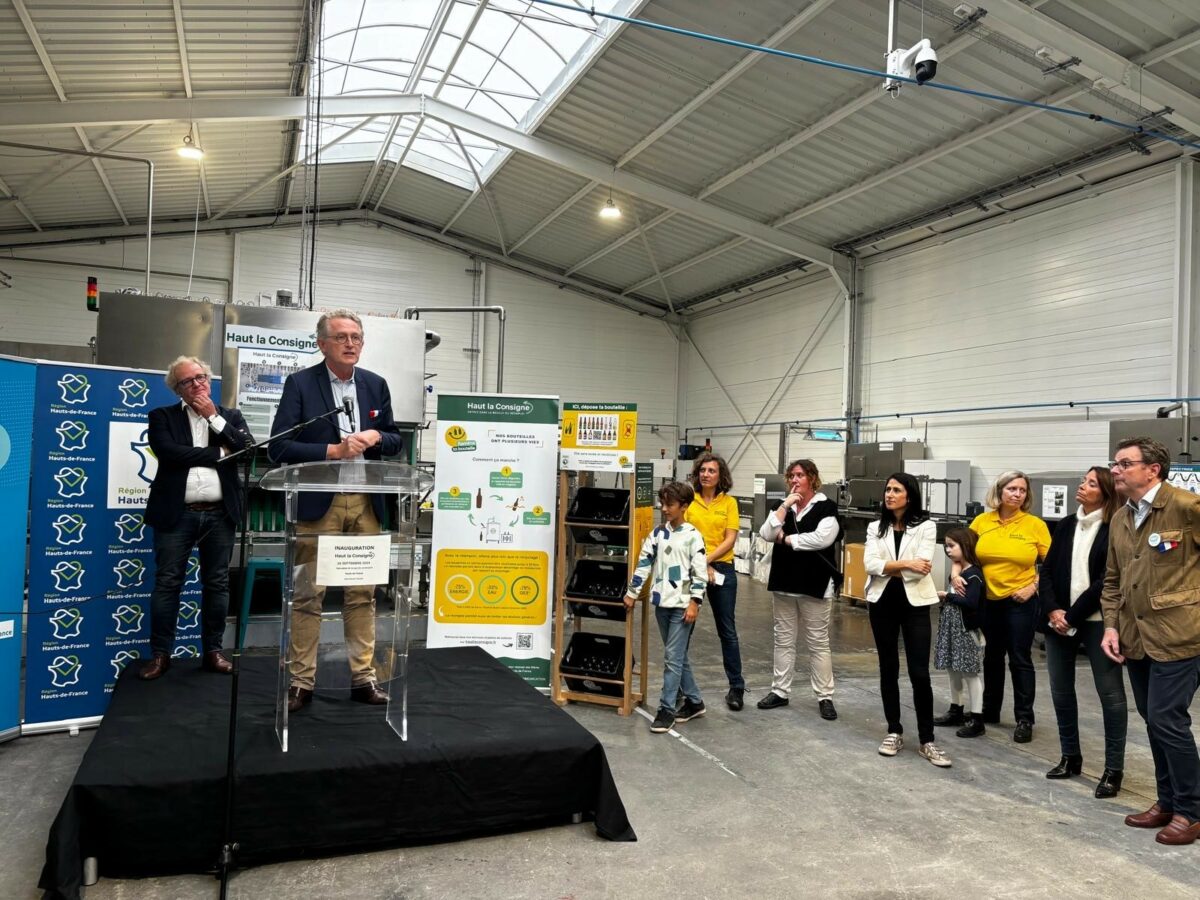 C’est dans le nord de la France , à Neuville en Ferrain précisément, que nous étions pour l’inauguration du nouveau centre de lavage d’emballages réemployables et réemployés d’Haut la Consigne.