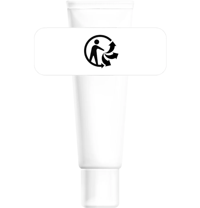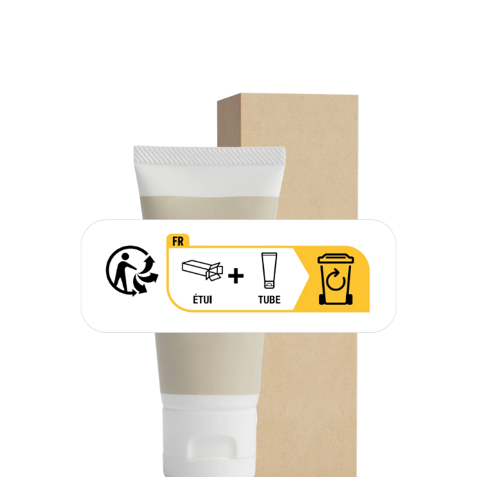 On imagine cette fois-ci que le tube de notre exemple a une surface de moins de 10cm2. Pour ce type d’emballage de moins de 10 cm2 on peut ne pas voir les consignes. Néanmoins, il est là aussi possible de se rendre sur la fiche du produit sur internet pour accéder aux consignes de tri, ou de le trier directement dans le bac jaune étant donné que c’est un emballage ménager.