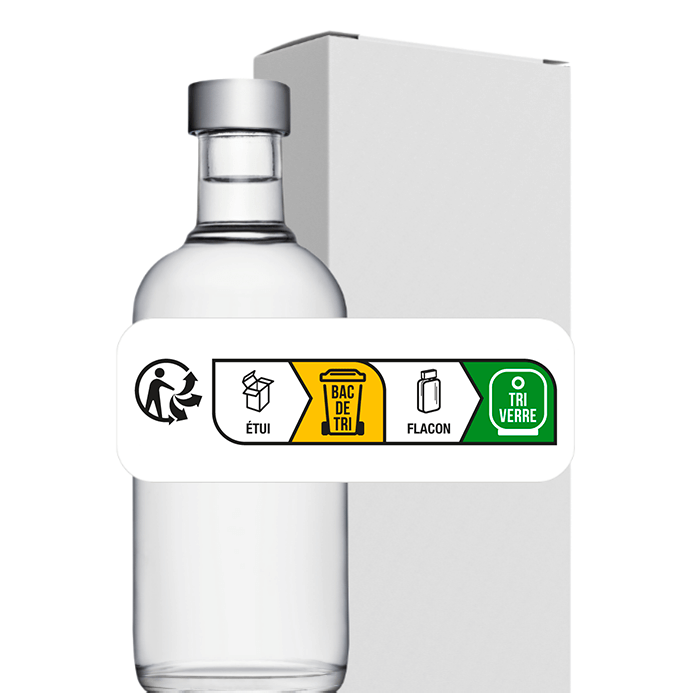 La destination : Ce dernier élément vous indique très simplement où mettre l’élément du produit ou de l’emballage, c’est-à-dire soit dans le « bac de tri » (la poubelle jaune), soit dans le « bac de verre ».